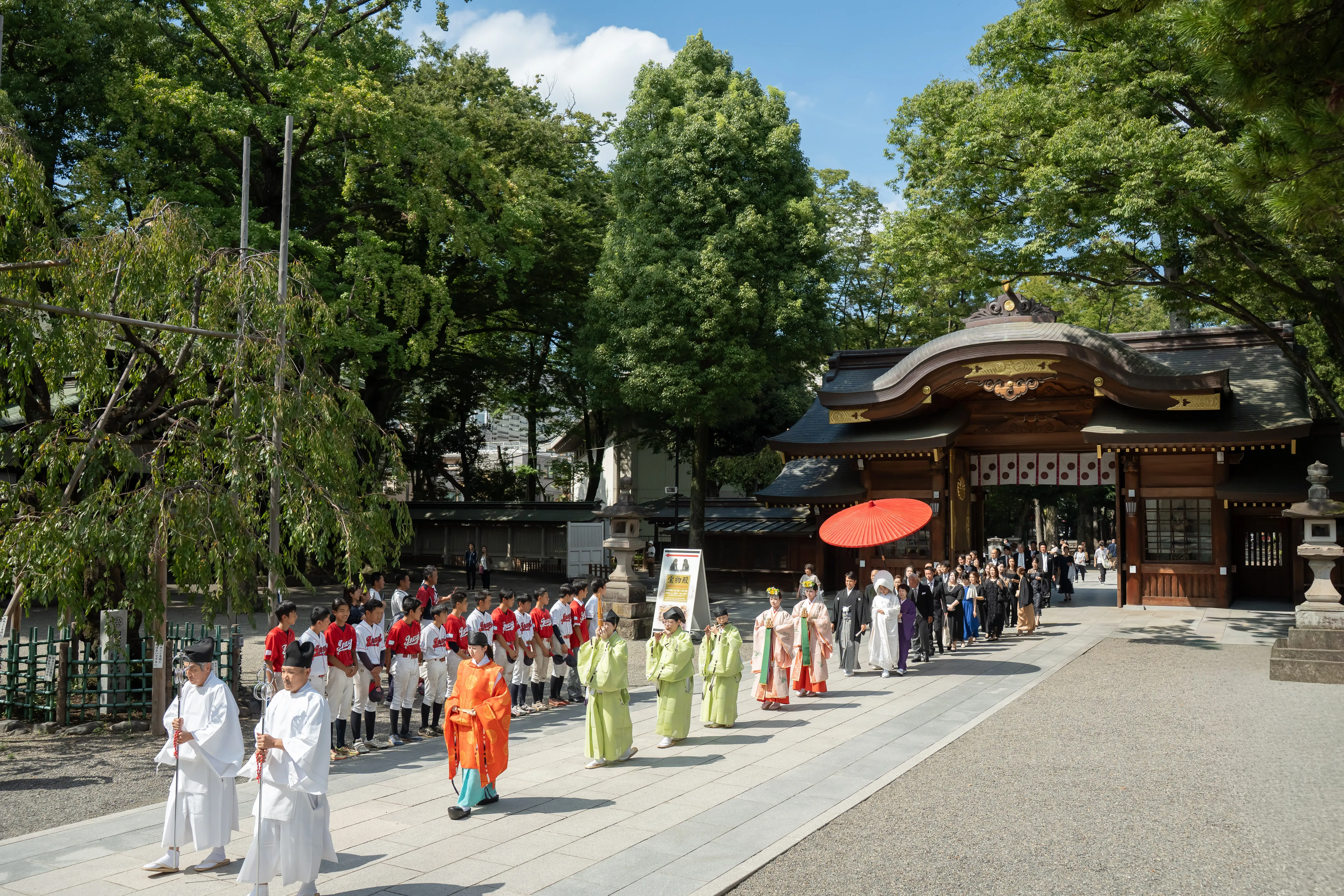 教え子たちに見守られながら参進の儀    9月【榊の間】33名